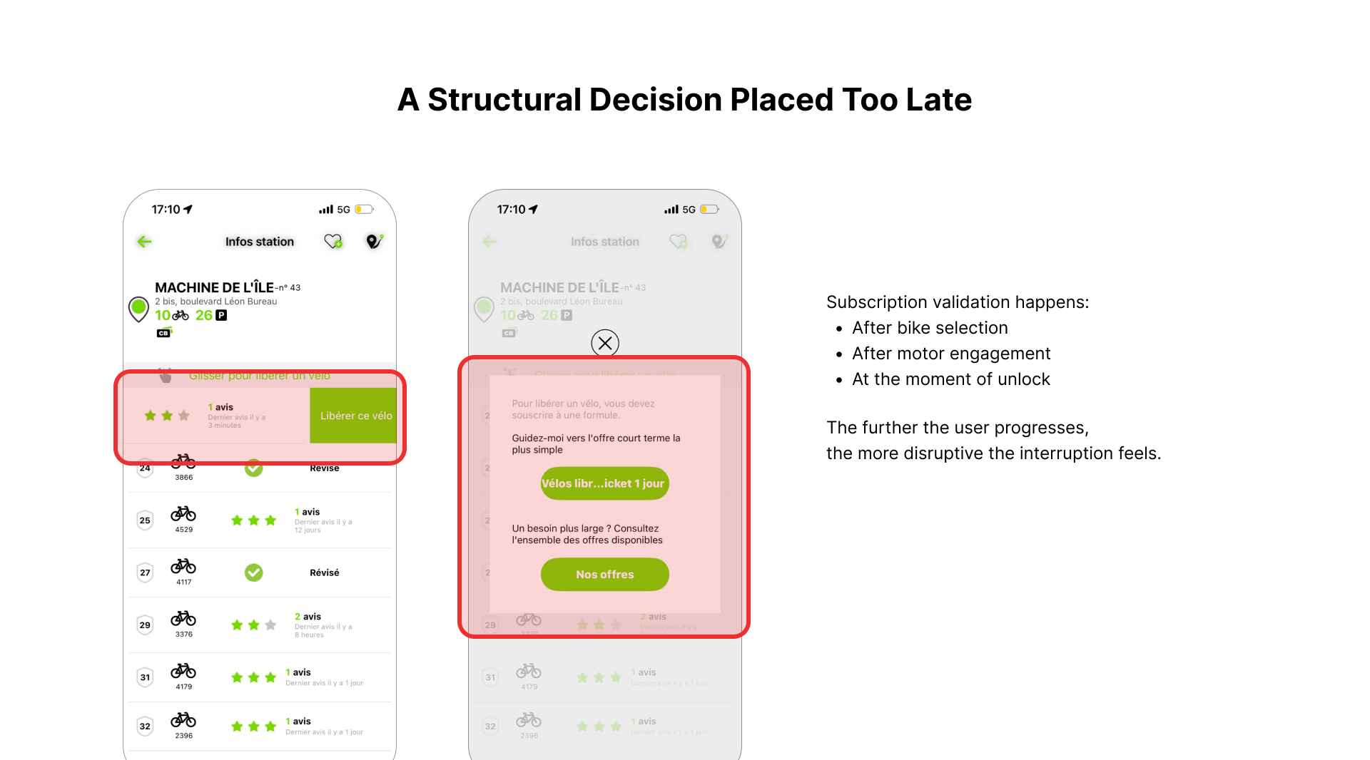 Activation friction was structural, not visual.The most important decision here wasn't a layout or a color. It was choosing when to ask the question.